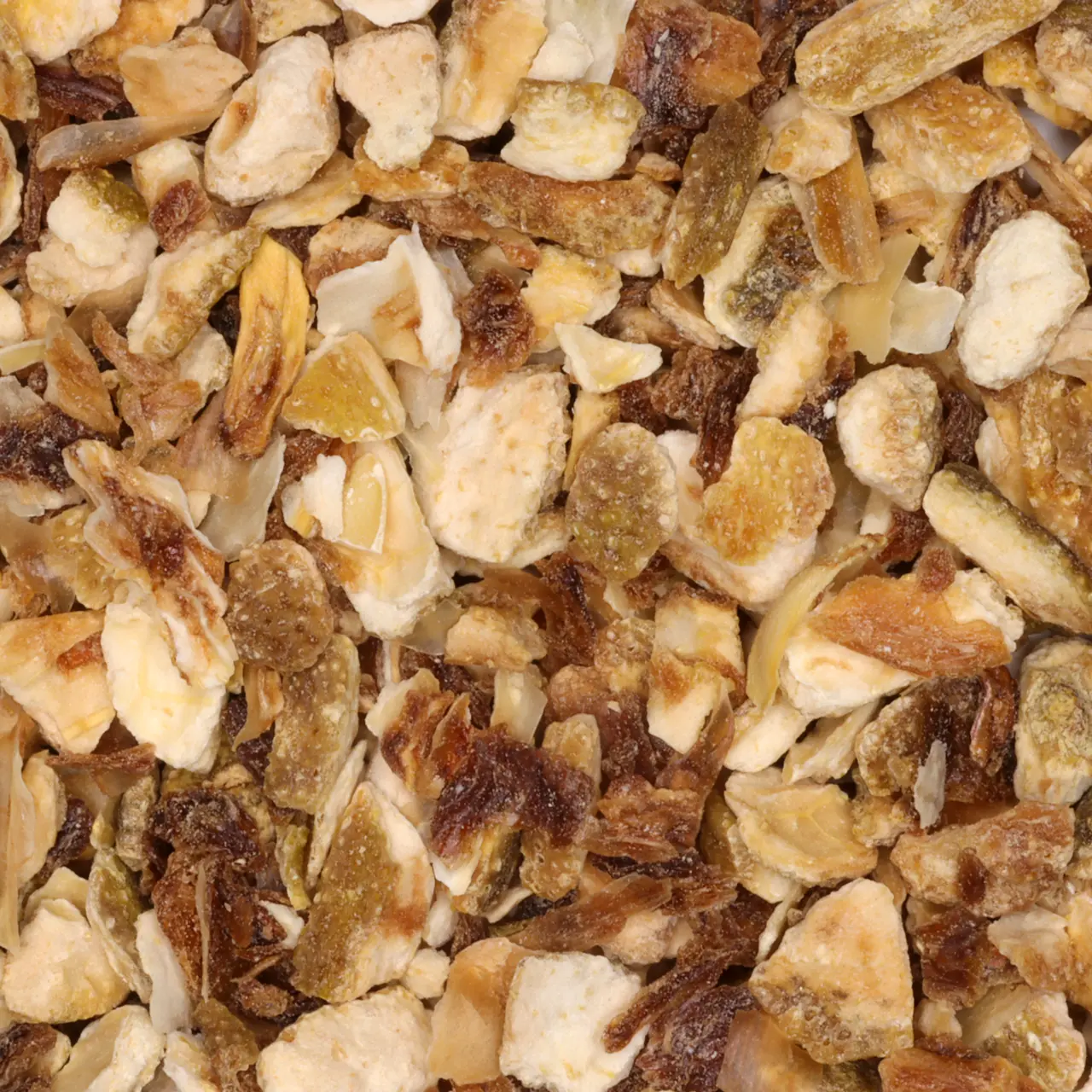 In infusies voegt bergamot een levendig aroma en een lichte bitterheid toe die zowel verfrissend als verwarmend werkt. Een bekende toepassing is Earl Grey-thee, waar de etherische olie van de bergamot de zwarte thee zijn karakteristieke, licht bloemige geur en smaak geeft. Maar bergamot-schil is ook heerlijk in kruidenmengsels, vooral met kamille, groene thee, of lavendel, en creëert een harmonieus evenwicht tussen frisheid en zachtheid.