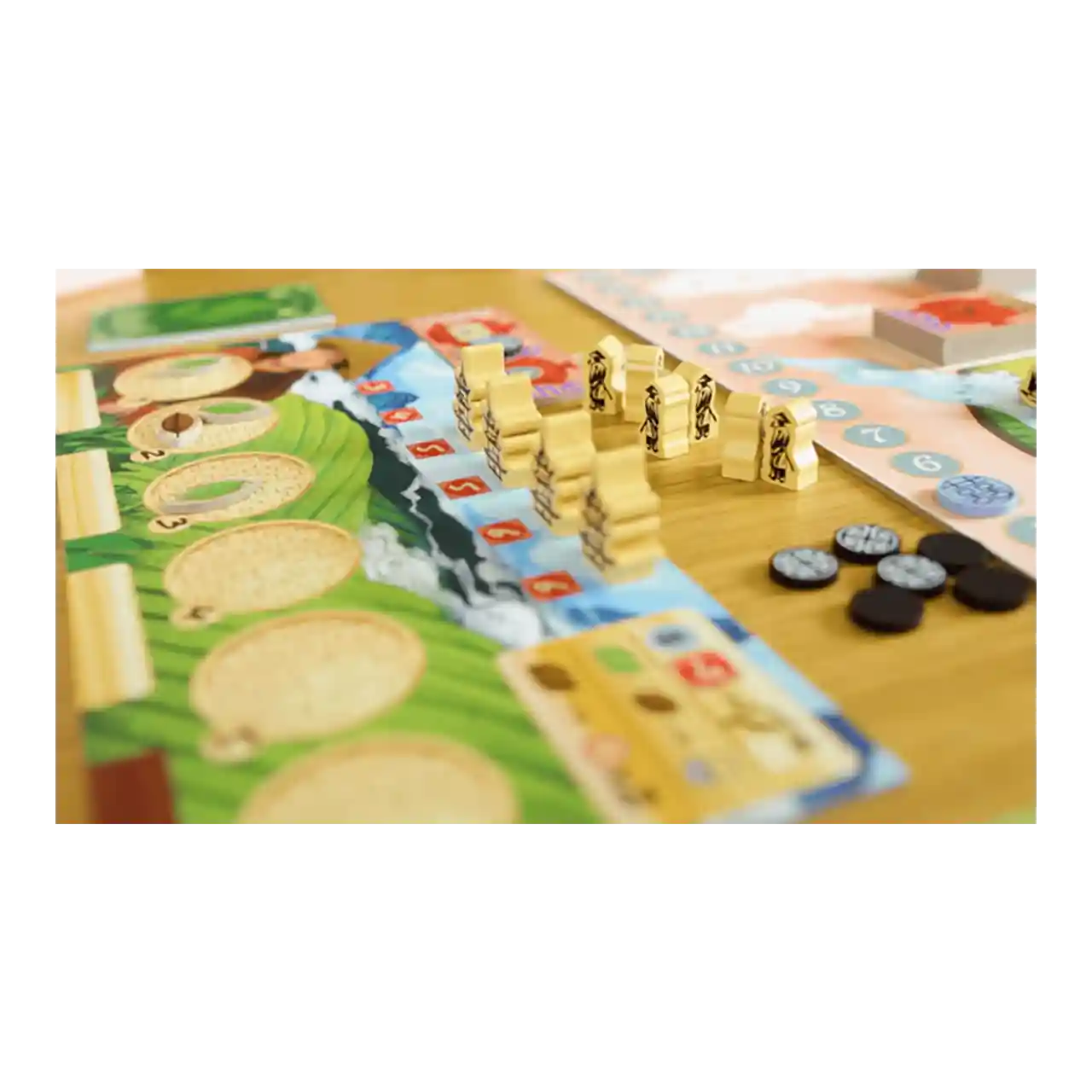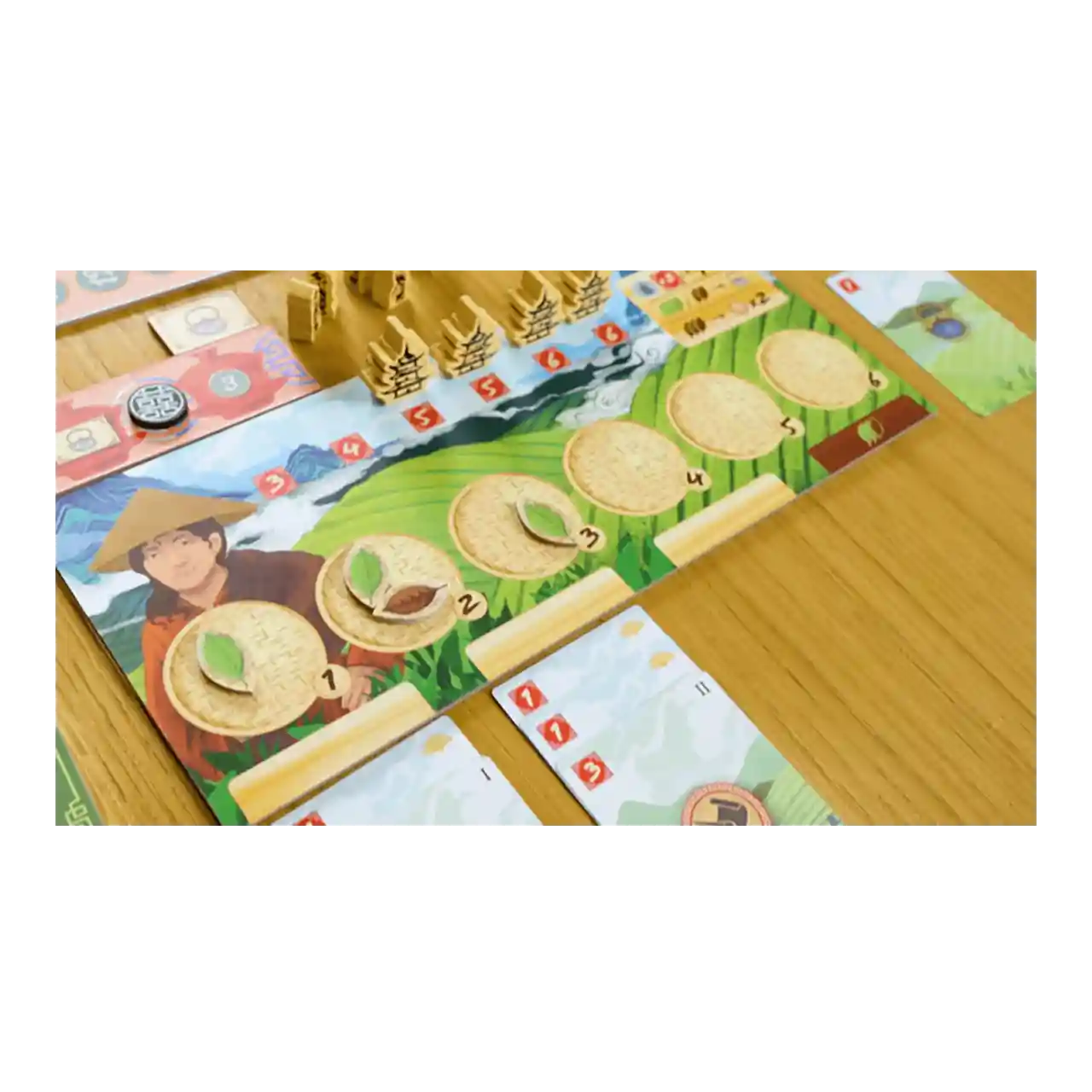 Het hart van het spel wordt door de groene en bruine theebladfiches gevormd. Je krijgt altijd groene theeblaadjes, die tijdens de rijping slechter van kwaliteit worden. Daarom kun je ze fermenteren en er bruine theeblaadjes van maken. Die worden steeds beter van kwaliteit en zijn daardoor waardevoller.
