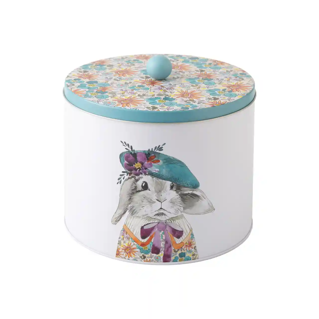 Op de trommel prijkt een charmant konijn in bloemenjas en blauwe baret, versierd met een kleurrijke bloem. Een exclusief handgeschilderd ontwerp van kunstenaar Tipperleyhill dat humor en elegantie moeiteloos combineert.