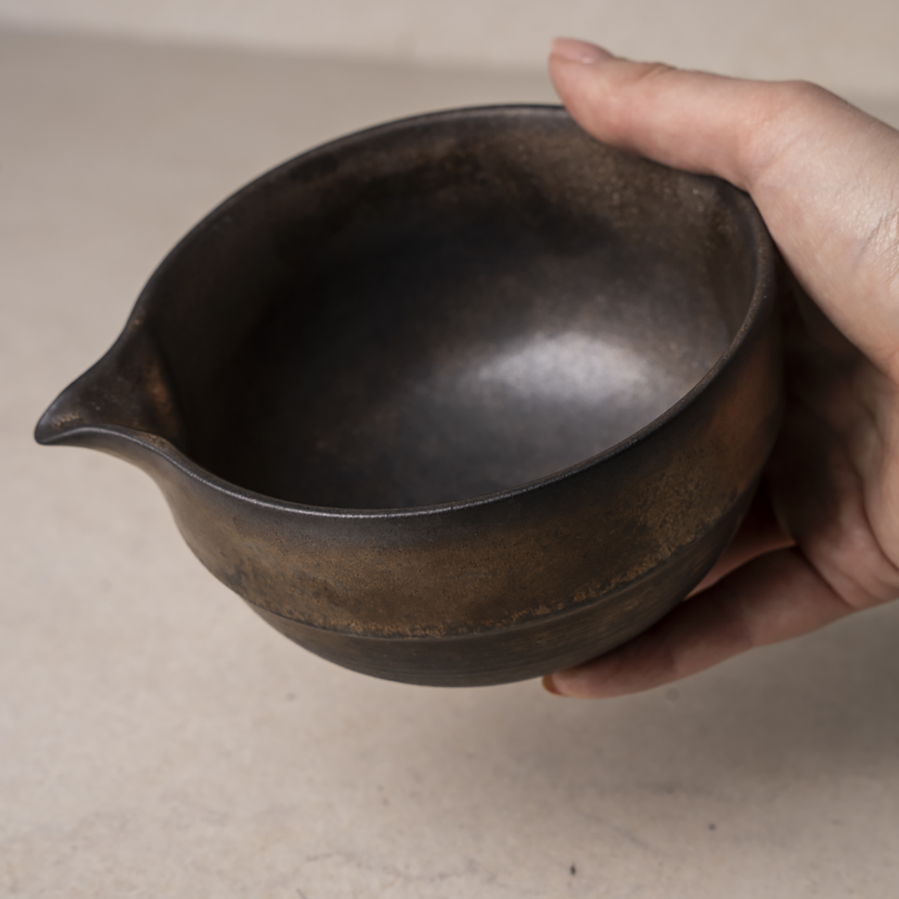 Met deze prachtige matchakom is het bereiden van matcha (latte) een fluitje van een cent. De praktische schenktuit maakt het inschenken van de thee gemakkelijk en zorgt voor een comfortabele hantering bij het vullen van een kopje of mok. Puur genieten! De exclusieve afwerking van de kom draagt bij aan de heerlijke ervaring. De hoogwaardige, bronskleurige metallic glans geeft de bruine kom een speciaal tintje.