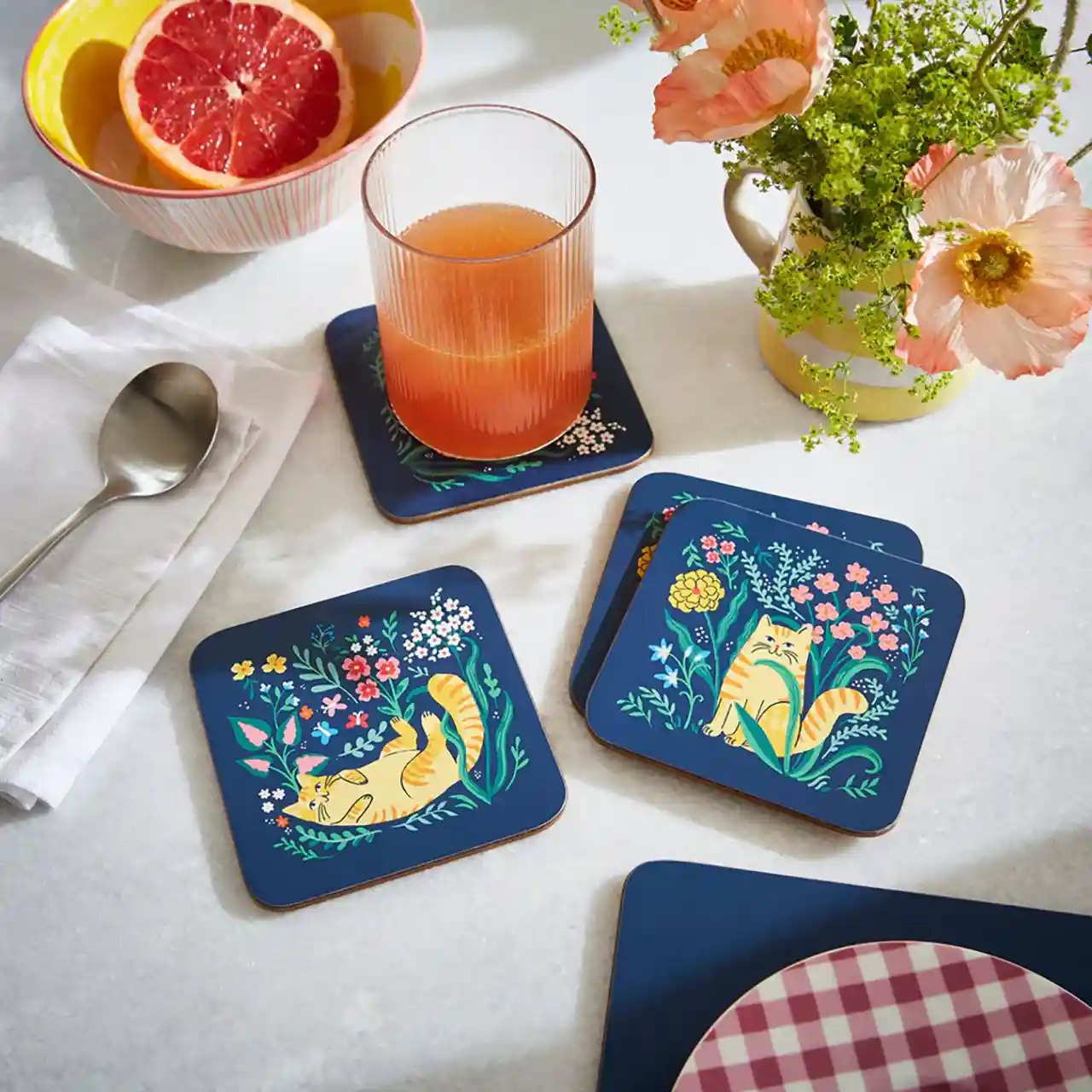 Laat je verleiden door de wereld van Ulster Weavers met onze onderzettersets, zorgvuldig ontworpen als aanvulling op je huis. Elke set bestaat uit vier onderzetters, versierd met een van onze prachtige eigen ontwerpen. Deze onderzetters zijn met zorg gemaakt, hebben een matte lakafwerking op de voorkant en een achterkant van 100% kurk voor duurzaamheid. Laat deze onderzetters een vleugje charme aan je tafel toevoegen terwijl ze oppervlakken beschermen tegen ongewenste vlekken. Omarm de kunstzinnigheid en kwaliteit waar Ulster Weavers bekend om staat en breng blijvende waarde en elegantie aan je dagelijkse momenten.