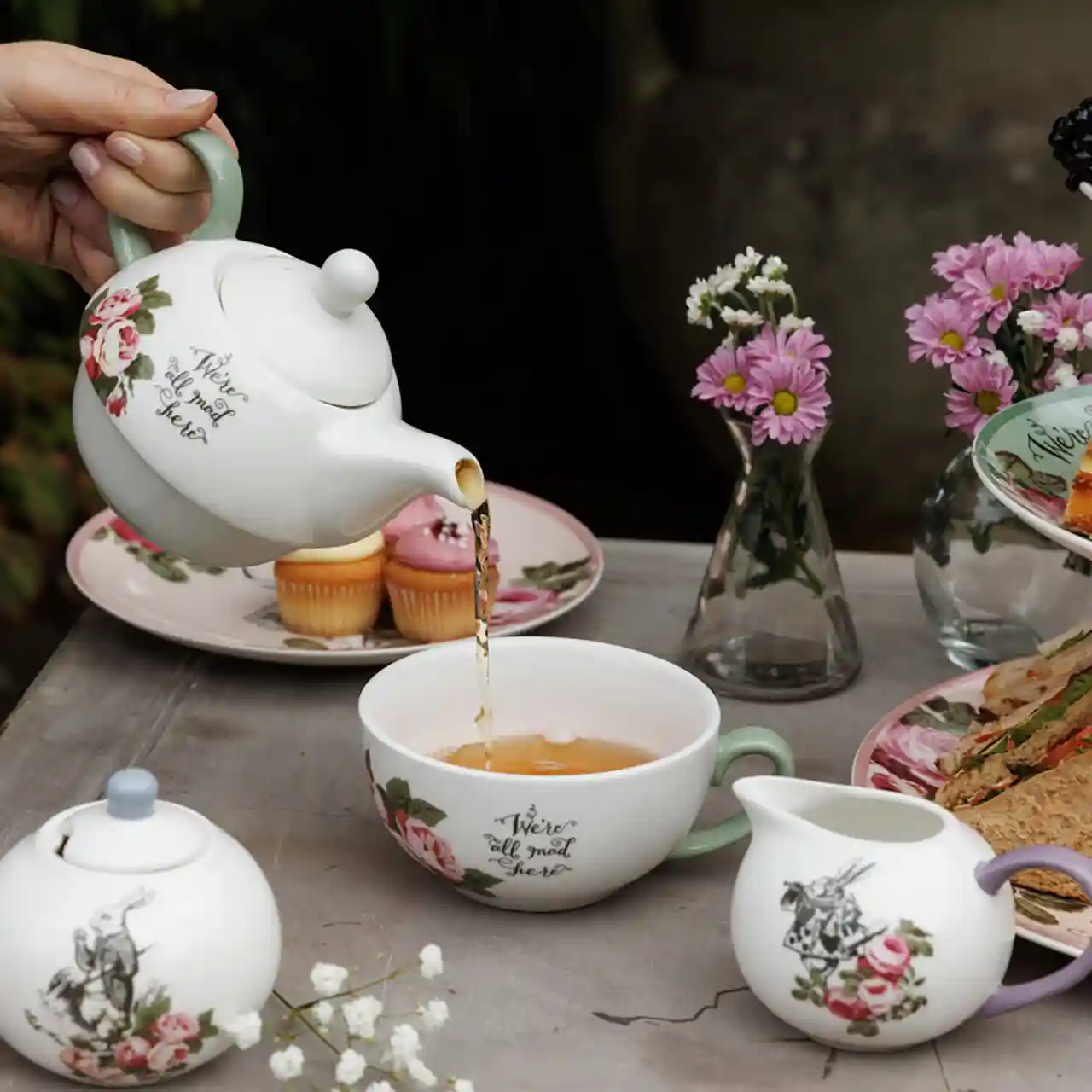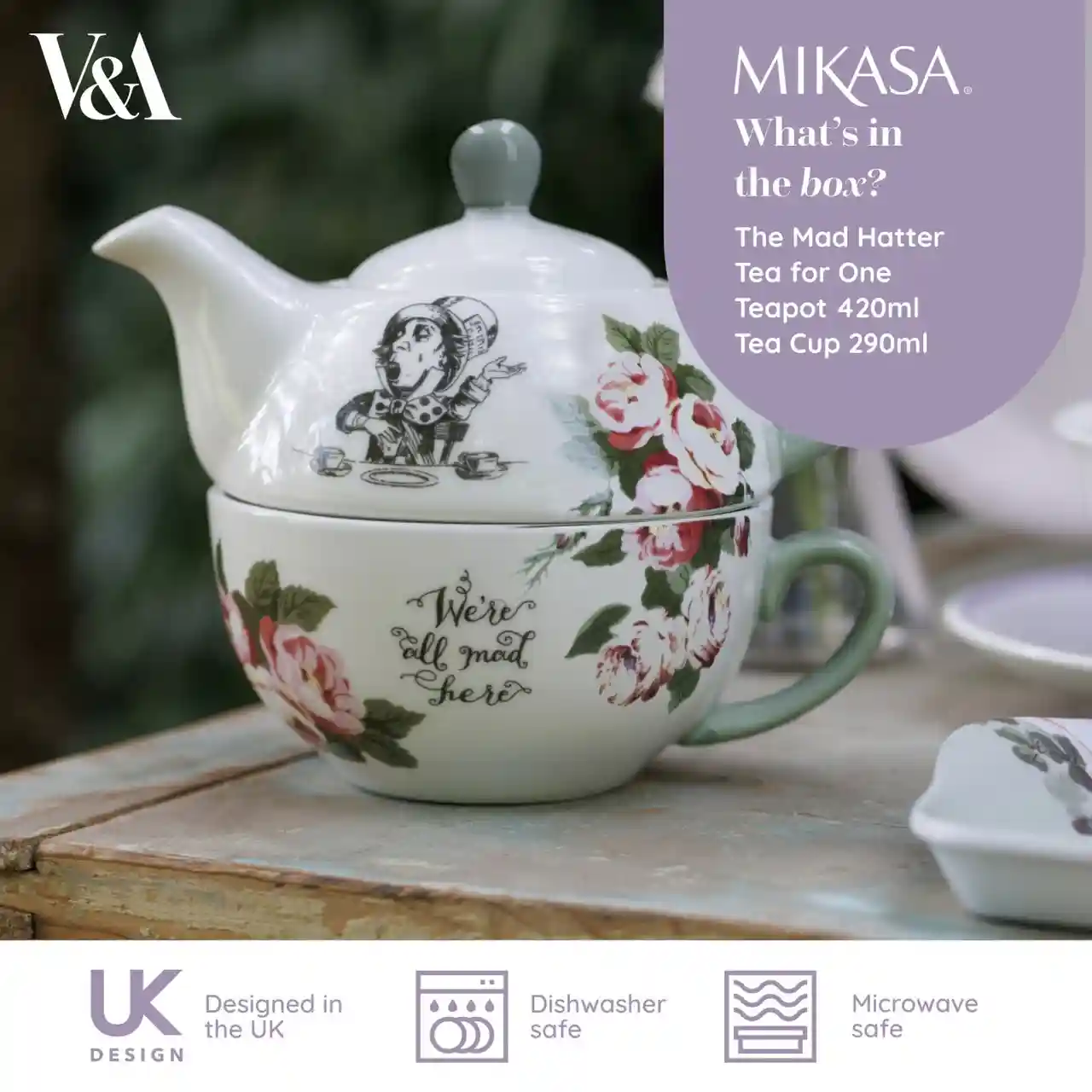 Deze Mikasa en V&A Alice in Wonderland Thee voor één theepot en kopjes-set heeft alles wat je nodig hebt om achterover te leunen en te ontspannen.