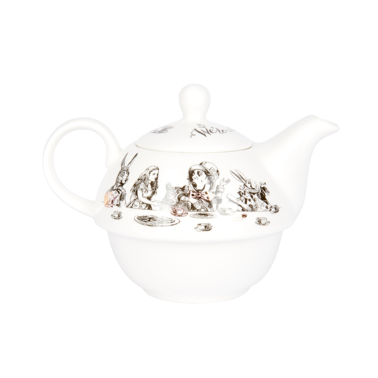 Het porseleinen ontwerp toont originele illustraties van Sir John Tenniel, waaronder de iconische theepartij met de Mad Hatter, de Maartse Haas en Alice zelf. Subtiel aangevuld met kalligrafische citaten als “Curiouser and curiouser!” is deze set een ode aan de Britse verbeelding en theecultuur.