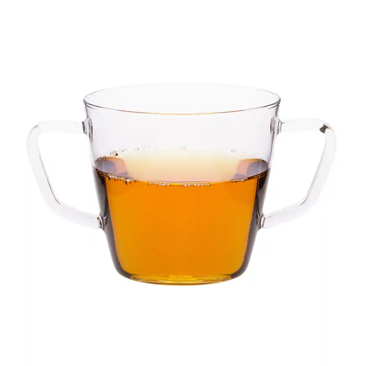 Een speciaal theeglas met twee handvaten van Trendglas Jena. Het theeglas ligt steviger in de hand dankzij de twee handvatten en is gemakkelijker te hanteren. Zo kan iedereen genieten van een glas thee!
