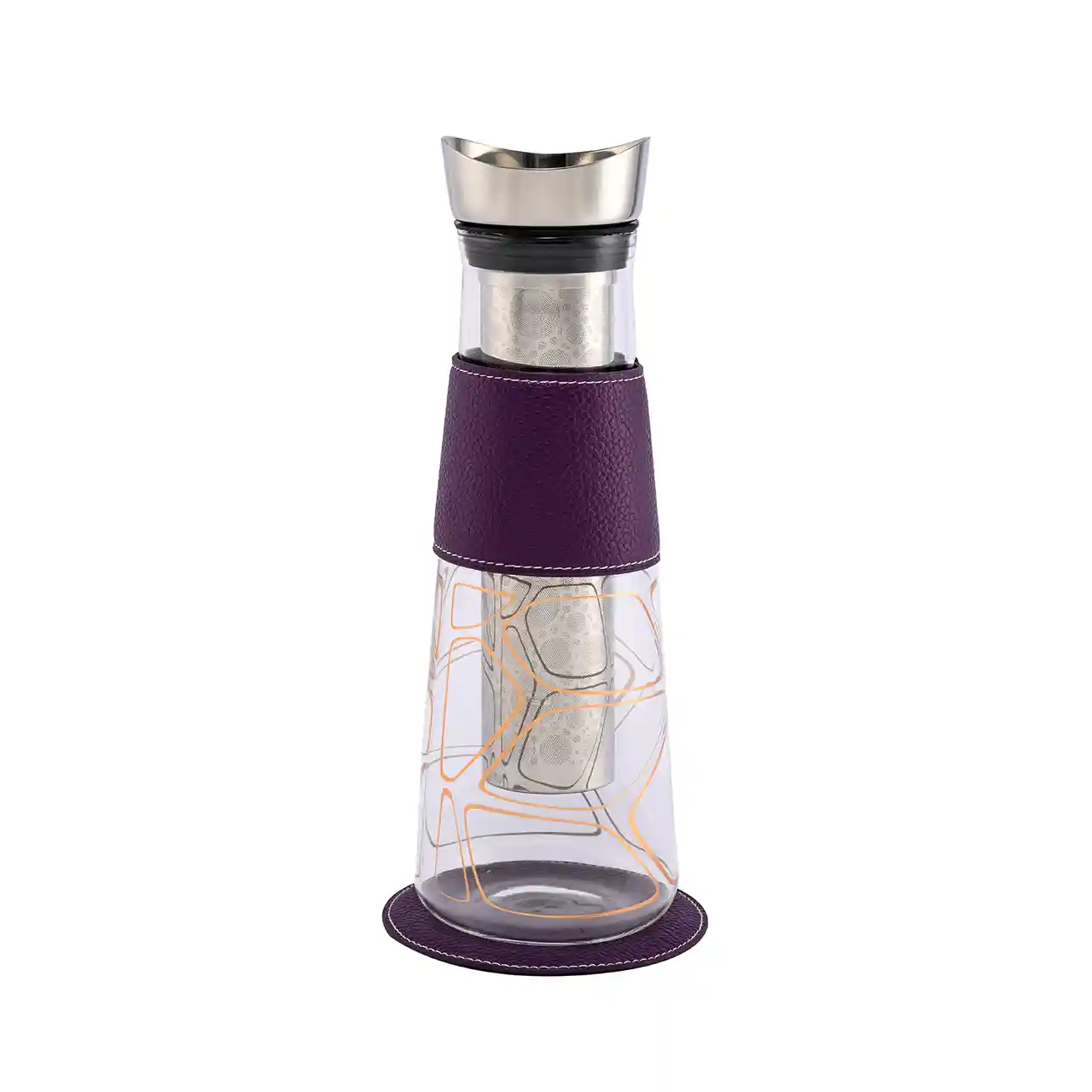 Het duurzame borosilicaatglas is bestand tegen hoge temperaturen, terwijl de decoratieve hoes van veganistisch leer uw handen beschermt tegen de hitte. Het roestvrijstalen klapdeksel met geïntegreerd filter zorgt ervoor dat er geen druppels ontsnappen tijdens het inschenken.