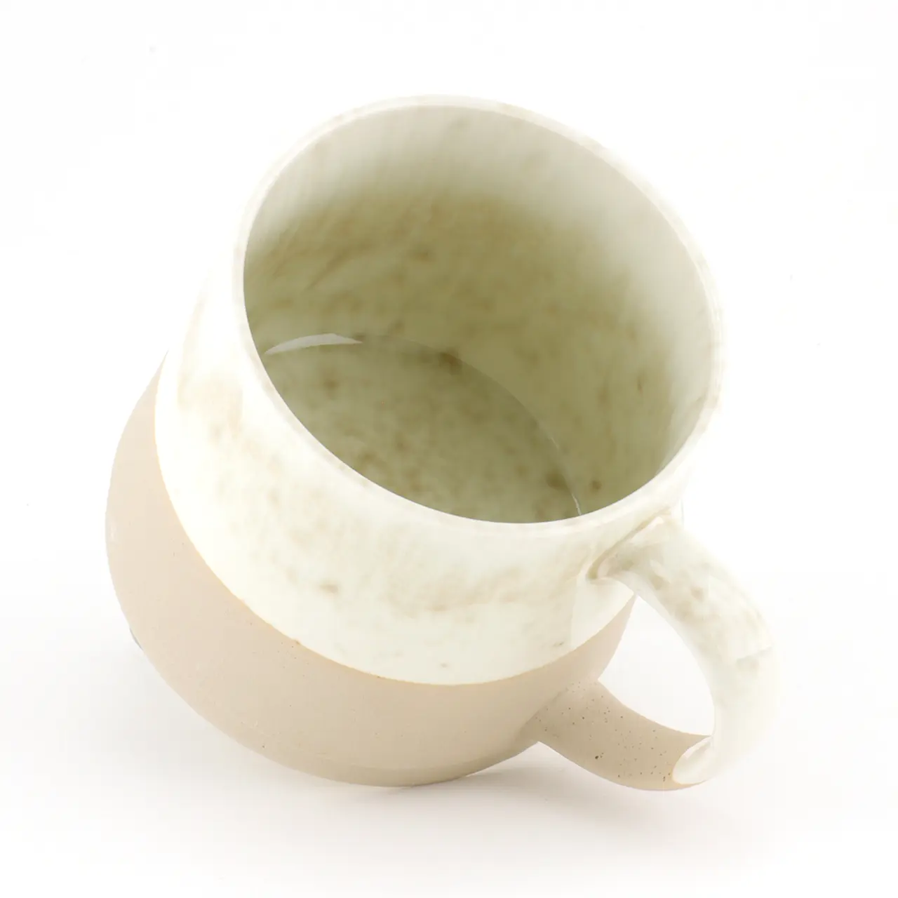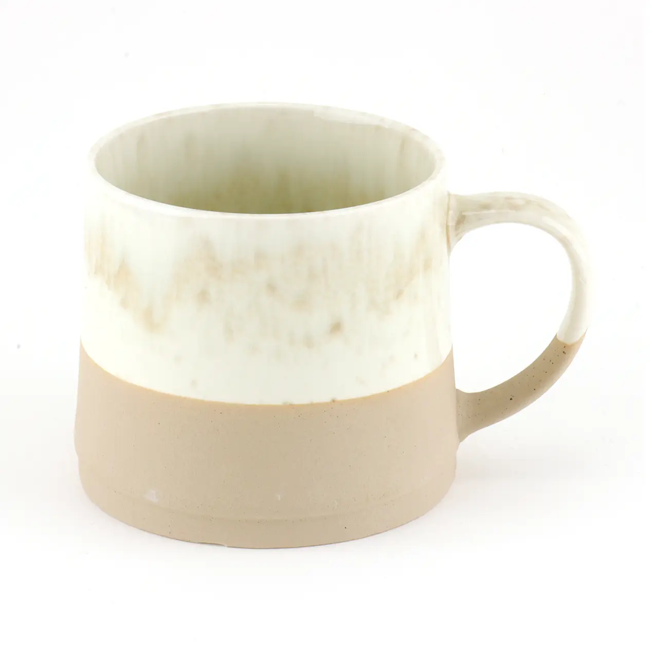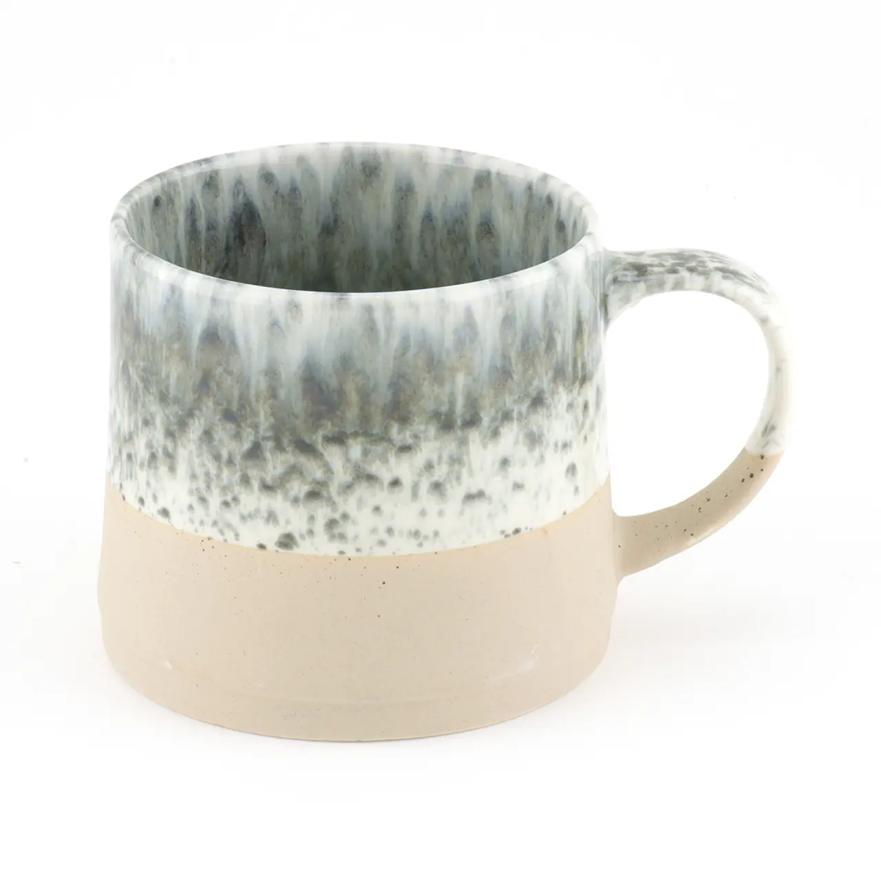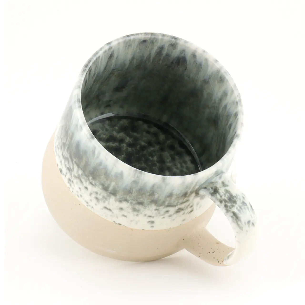 Het opvallende reactieve glazuur zorgt voor een echt wauw-effect bij deze prachtige mok! Dankzij de speciale glazuurtechniek resulteren smelt- en oxidatieprocessen tijdens het bakken in een interessant en veelzijdig glazuur. Dit glazuur varieert van mok tot mok met individuele kleurschakeringen, waardoor elk exemplaar uniek is. De zandkleurige, matte basis met zijn ruwe betonlook contrasteert prachtig met het in het oog springende glazuur en geeft de mok een gevoel van rust.
