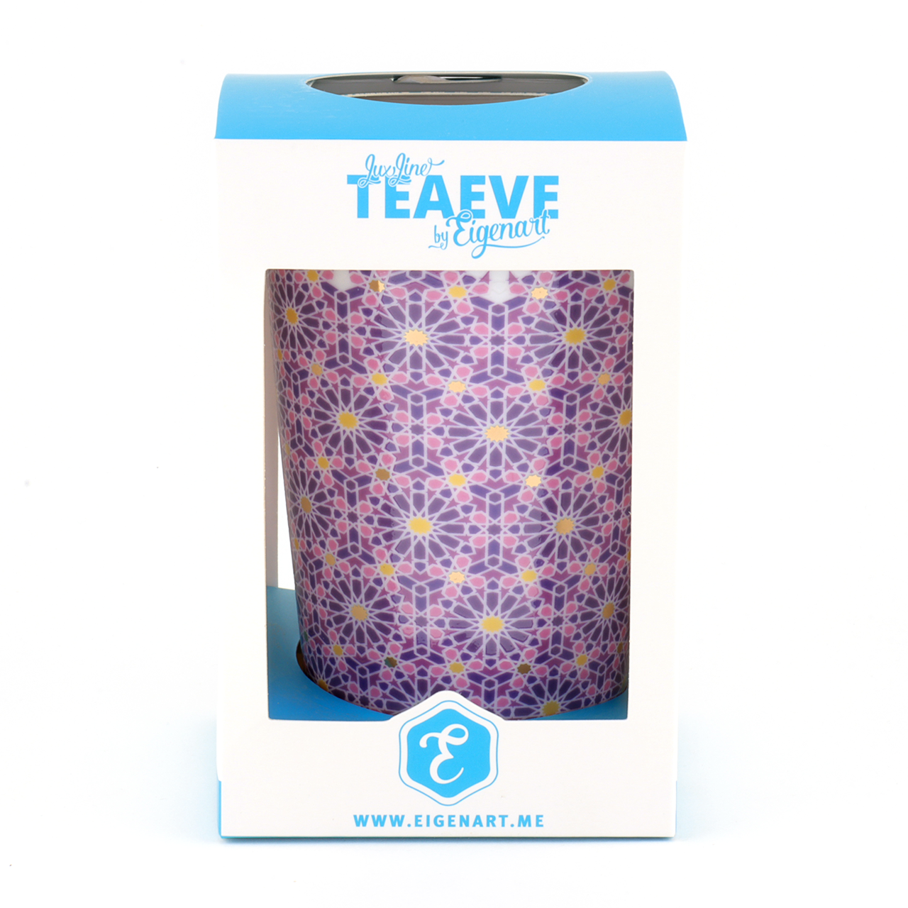 Exotisch en verfijnd – het Andalusia Berry-motief van Eigenart is geïnspireerd op de sierlijke mozaïeken uit Andalusië. Het diepviolette patroon met gouden accenten en bessentinten brengt een vleugje zuiderse elegantie in elk theemoment.