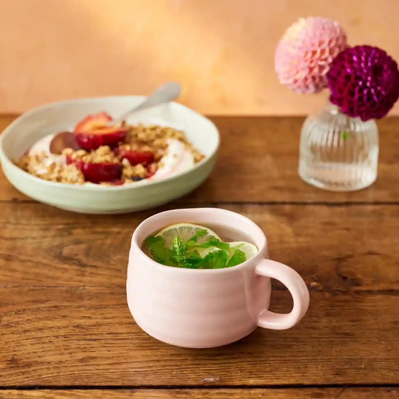 Het duurzame steengoed en de zachte glans geven hem een tijdloze charme, terwijl hij dankzij zijn robuuste ontwerp gewoon in de vaatwasser en magnetron kan.