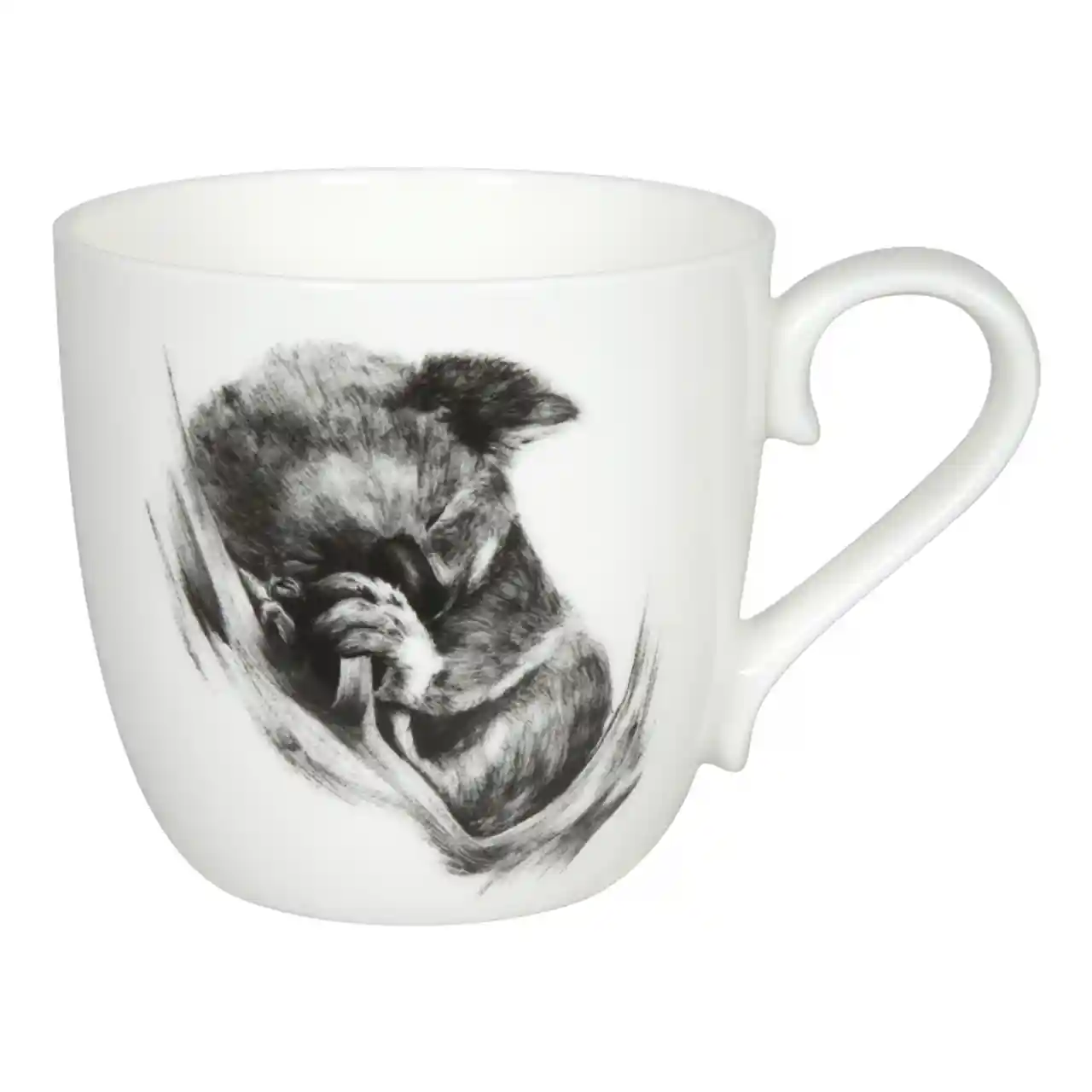 Deze Könitz Amazing Animals-mok met koala vangt een intiem, dromerig moment van rust en geborgenheid. De zachte, schetsmatige illustratie in zwart-wit geeft de mok een serene en warme uitstraling. Gemaakt van hoogwaardig porselein: een kalme metgezel voor een ontspannen thee- of koffiepauze.