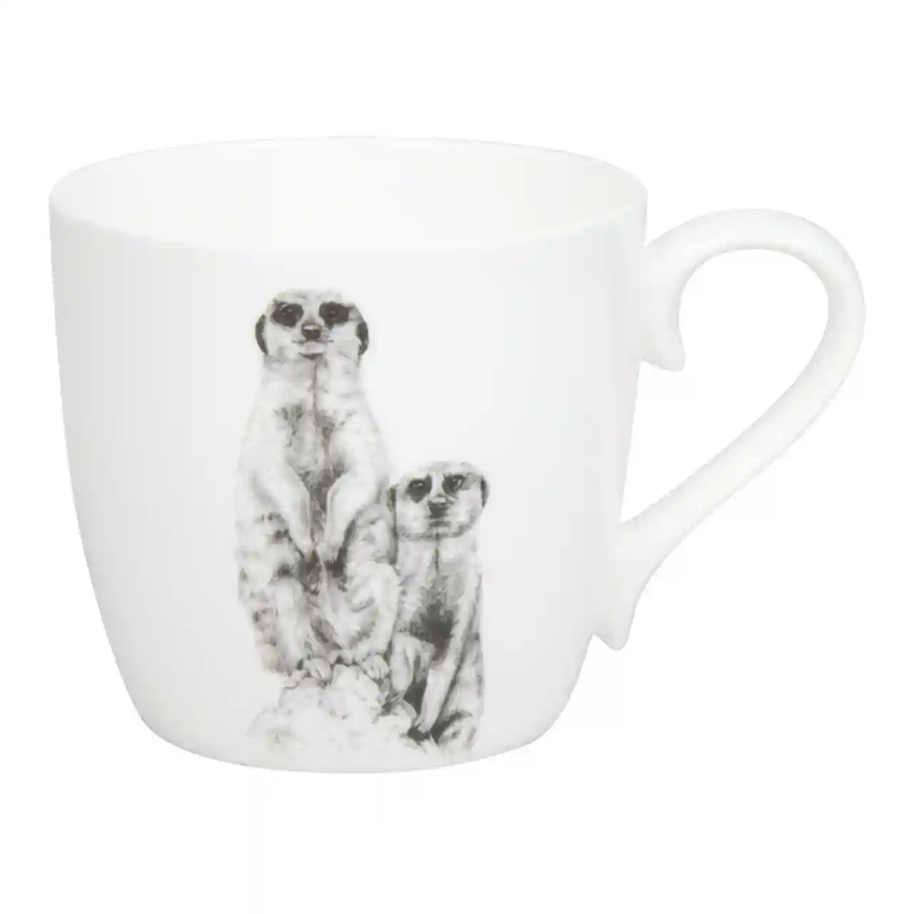 Deze Könitz Amazing Animals-mok met meerkatten toont een alert maar charmant duo, subtiel geïllustreerd in zachte grijstinten. De meerkatten staan symbool voor nieuwsgierigheid en saamhorigheid, perfect voor een rustig thee- of koffiemoment. Gemaakt van hoogwaardig porselein en fijn in de hand: een kleine blikvanger voor elke dag.