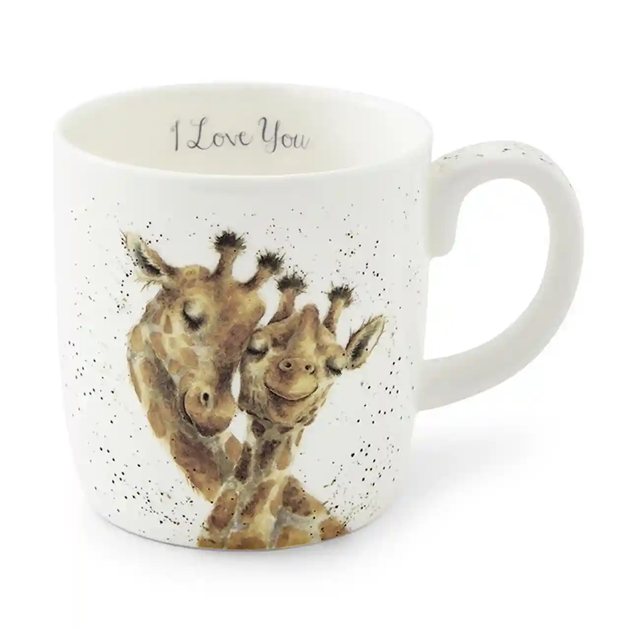 Het gedetailleerde ontwerp van deze theemok toont twee giraffen op de voorkant die elkaar lief ontarmen. Met aan de binnenkant van de mok de tekst ”I Love You”.