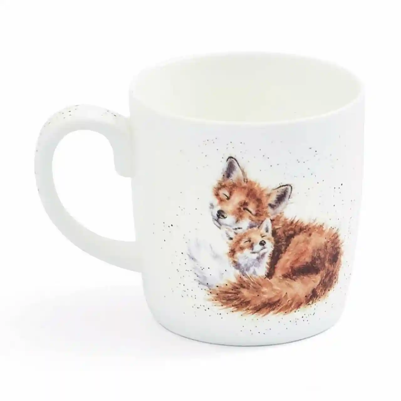 Het gedetailleerde ontwerp van deze theemok toont een jonge en moeder vos op de voorkant die elkaar lief verwarmen. Met aan de binnenkant van de mok de tekst ”Mum”.