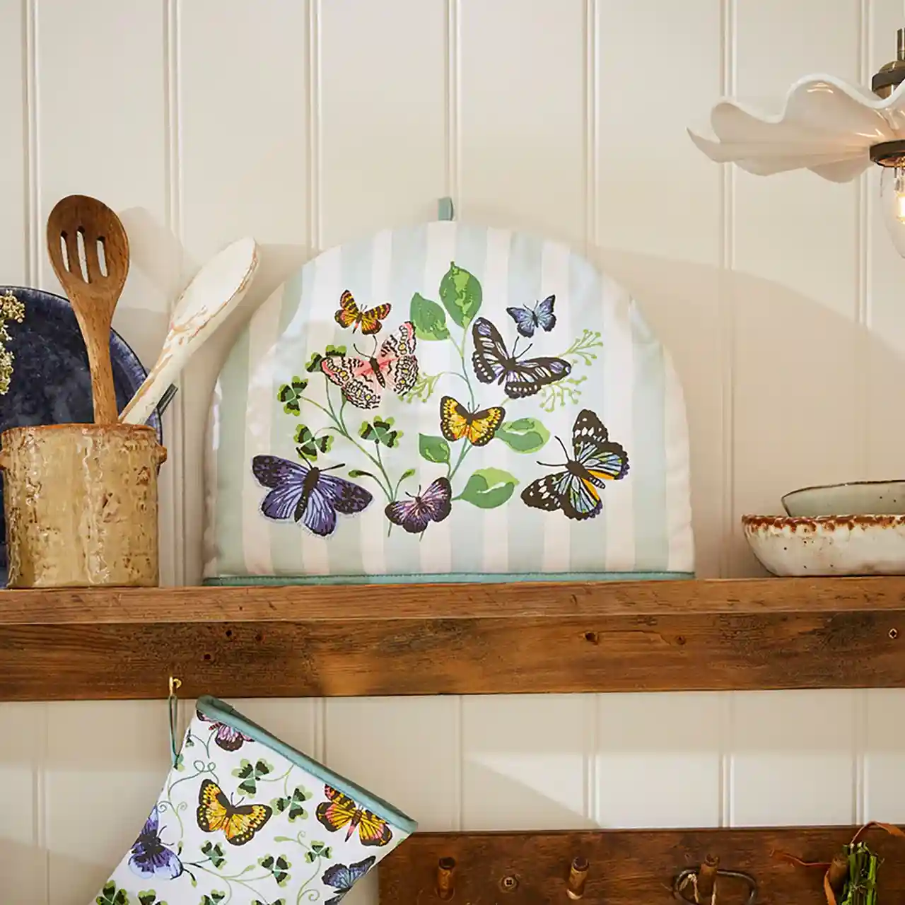 Katoenen theemuts in het Butterfly Grove design.