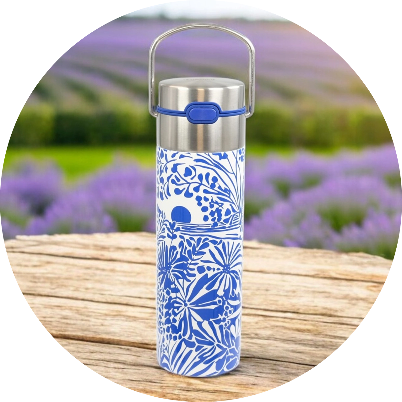 De dubbelwandige roestvrijstalen Eigenart Leeza Cote d’Azur thermosfles houdt je warme dranken vele uren warm – koude dranken blijven lang verfrissend in de zomer.