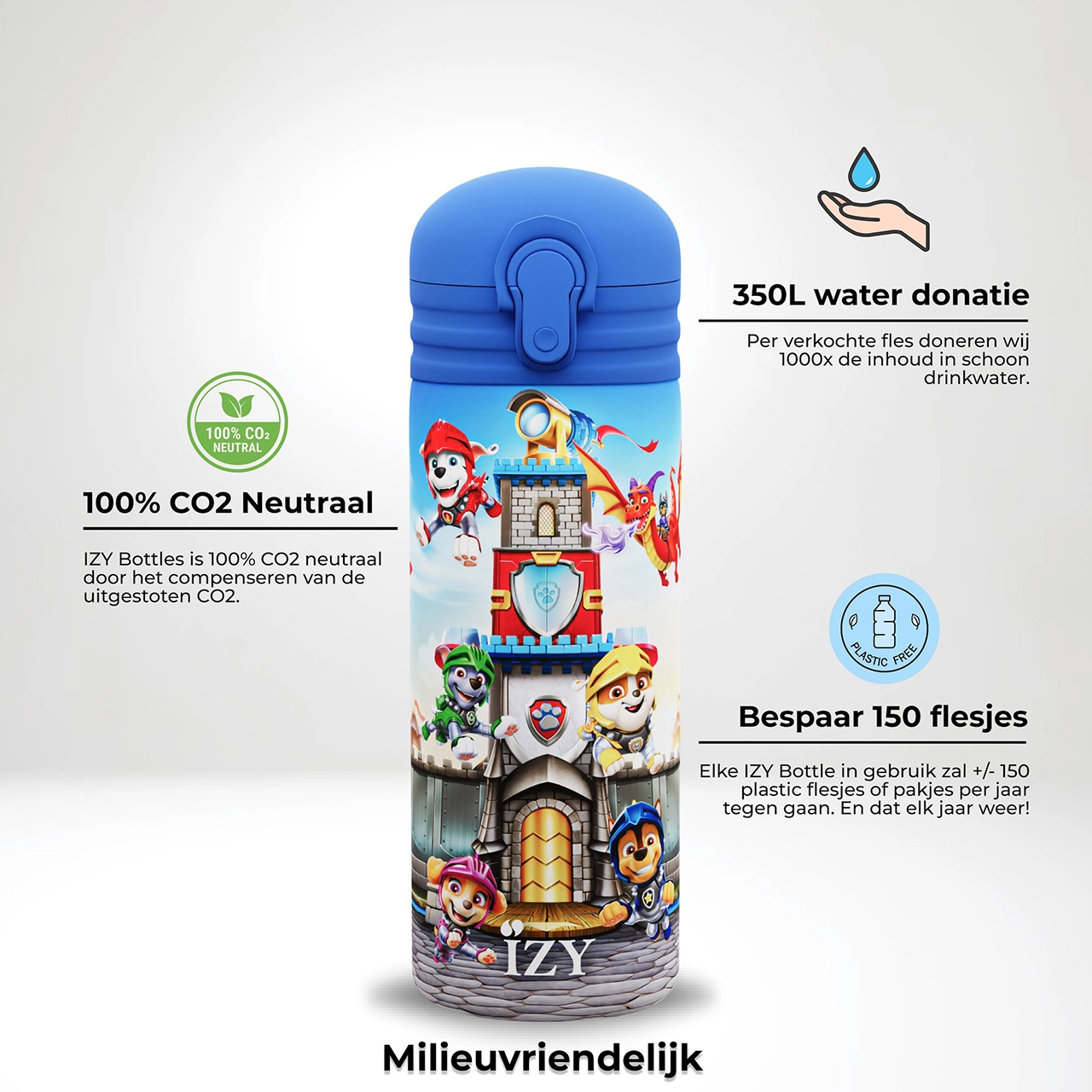 - Eén IZY Kids fles gaat 150 plastic flesjes tegen